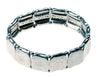 Smooth metal squares wrap the wrist in this comfortable elasticized cuff. Made of recycled mixed metals including silver, pewter and copper.