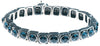 Sapphire-blue crystals surrounded by square metal beads strung on stretchy, comfortable elastic. Made of recycled mixed metals including silver, pewter and copper.