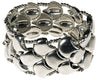 Curvy scale-shaped metal elements interspersed with tiny round beads, strung on a comfortable elastic cuff. Made of recycled mixed metals including silver, pewter and copper.