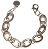 Chunky ovals and delicate circles alternate to form this modern chain bracelet, fastened with a lobster clasp. Great on its own or in a stack with other bracelets. Made of recycled mixed metals including silver, pewter and copper.