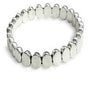 Flat, oval shaped elements strung on elastic. Great when paired up with 2 or 3 other bracelets. Circumference: 6-3/4”.