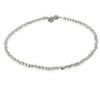 Solid square silver beads strung together, finished with a silver push button clasp. Overall length: 15”.