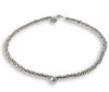 A string of tiny metal beads adorned with a crystal solitaire, fastened with a lobster clasp. Great on its own or mixed with a stack of other bracelets. Made of recycled mixed metals including silver, pewter and copper.