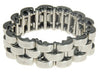 Reminiscent of a classic watch band, this bold bracelet features chunky metal links strung on comfortable elastic. Made of recycled mixed metals including silver, pewter and copper.