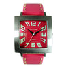 As featured in Oprah Magazine; a bold statement piece. Unisex square two-toned dial with a retro feel. Smooth leather strap and heavy top stitch detail. Case size is 1 1/2". Available in pink, black, blue, ivory, orange, purple, yellow, red, brown, and green.