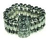 Sparkling crystal solitaires flanked by two rows of tiny metal beads, fastened with a lobster clasp. Made of recycled mixed metals including silver, pewter and copper.