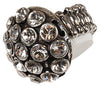 Cocktails, anyone? A cluster of Swarovski crystals sparkles on an elasticized shank of round and oblong shaped rods. One size only. Note: Elasticized rings must be removed for hand washing. Soap chemicals will break down elasticity.